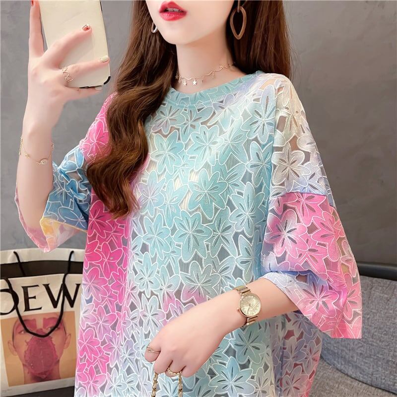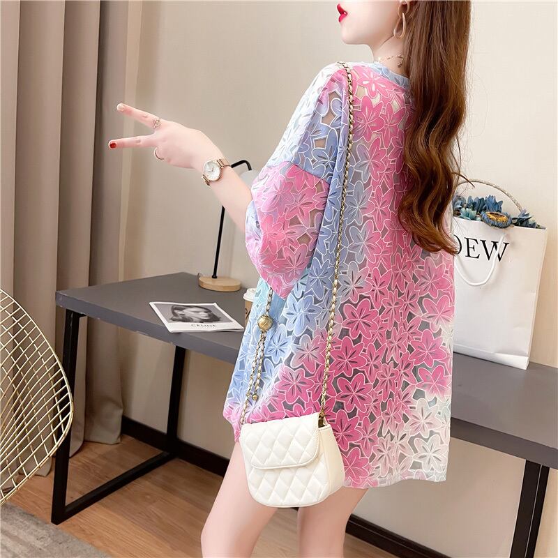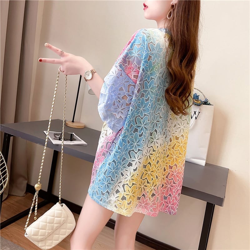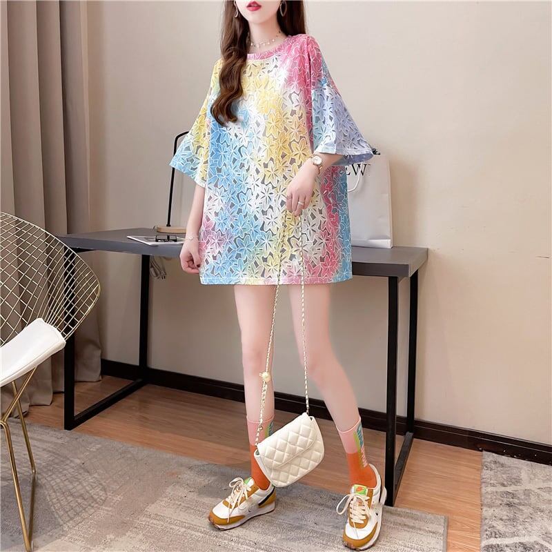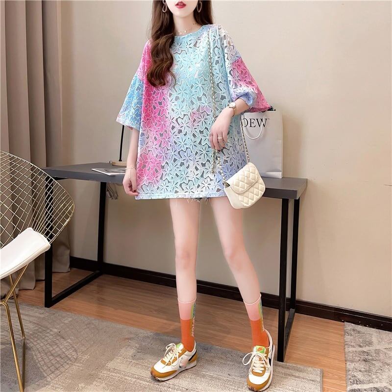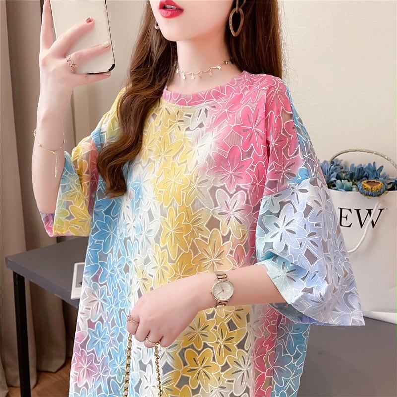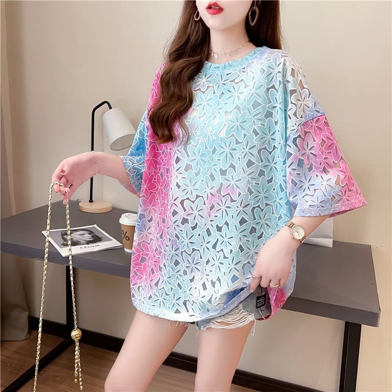 オシャレ度満点 スタイリッシュ ラウンドネック 透かし彫り Tシャツ カットソーins-2957