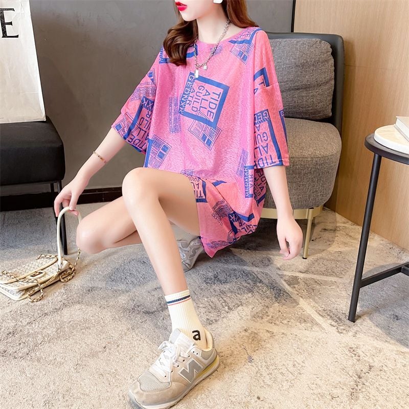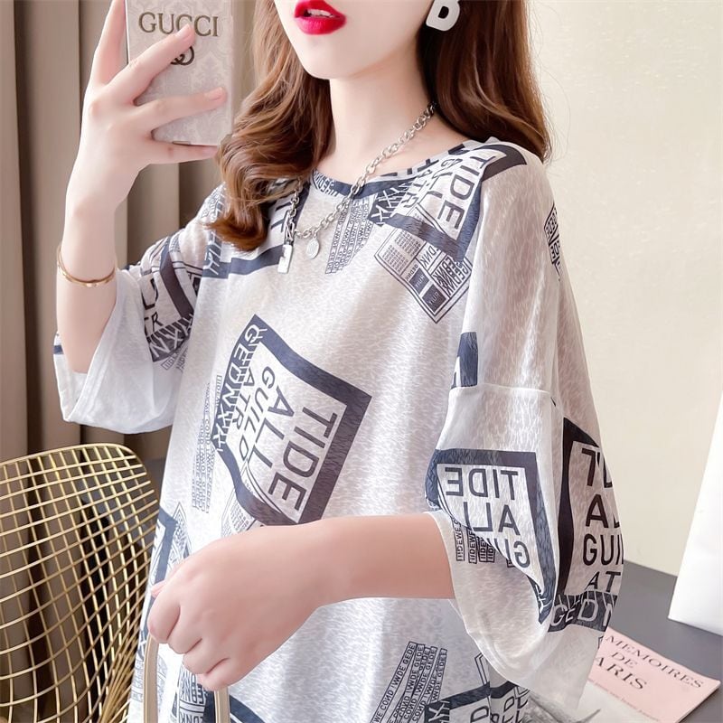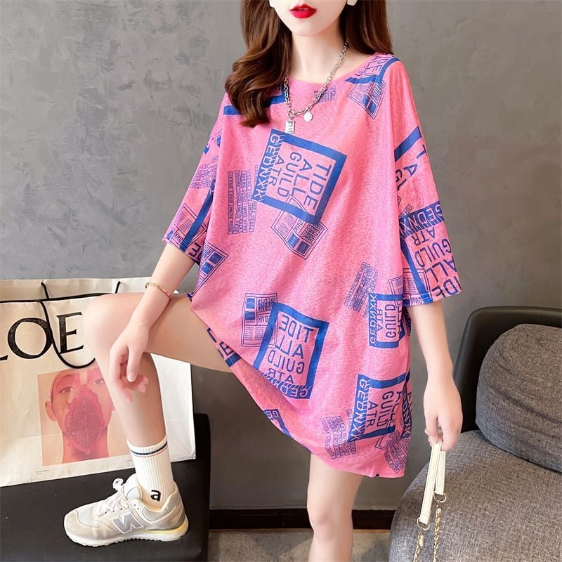 【半額!期間限定!!】美人度アップ カジュアル プリント ゆったり 半袖Tシャツins-8490