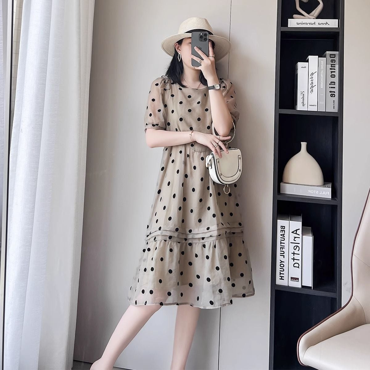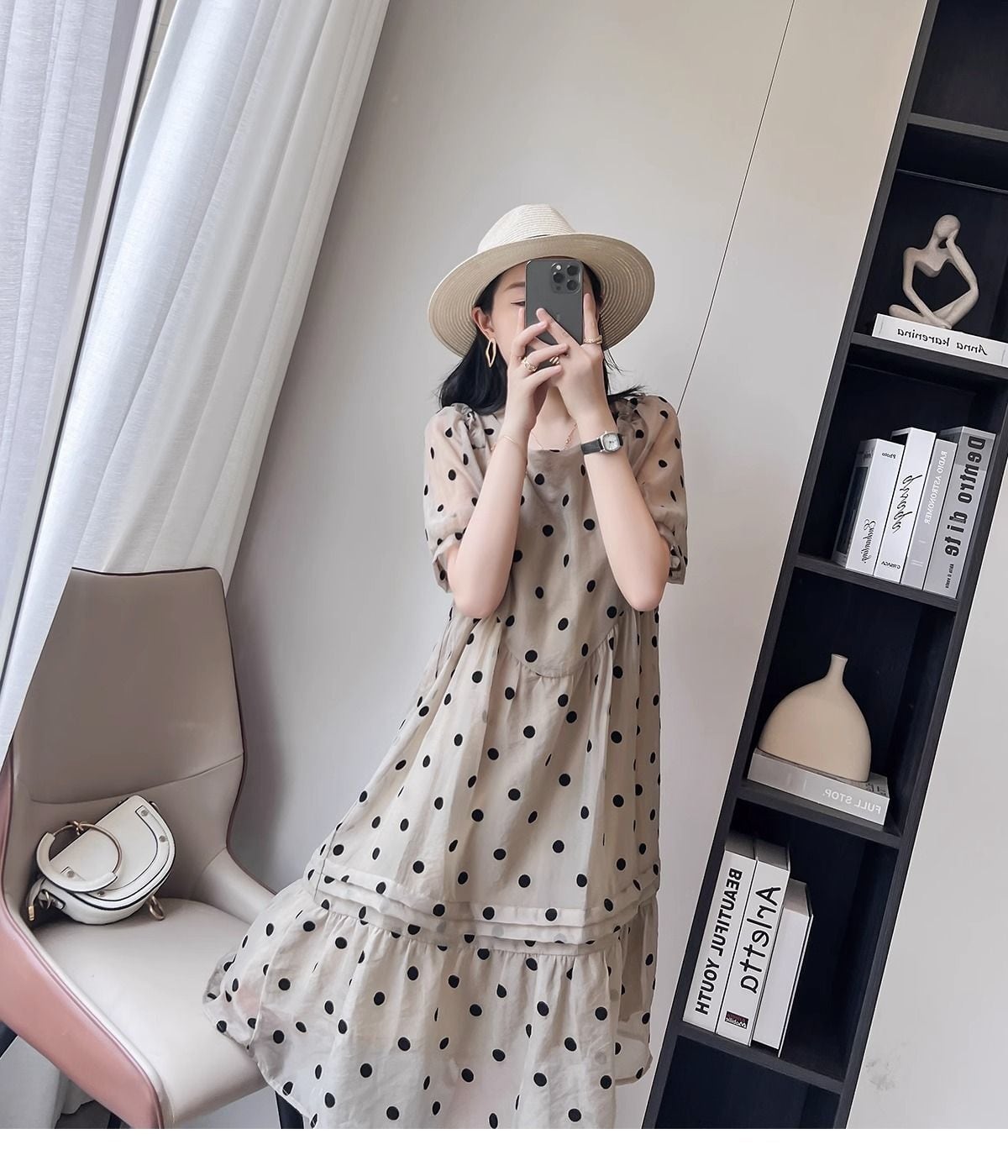 美人度アップ カジュアル エレガント ドット柄 ワンピースins-8379