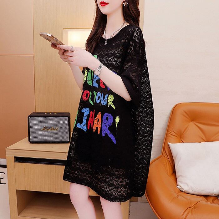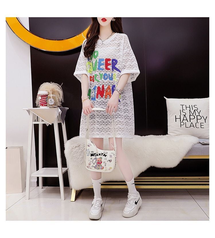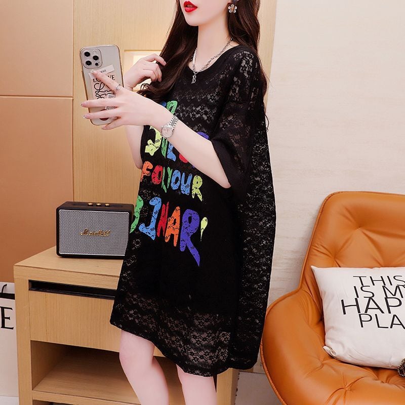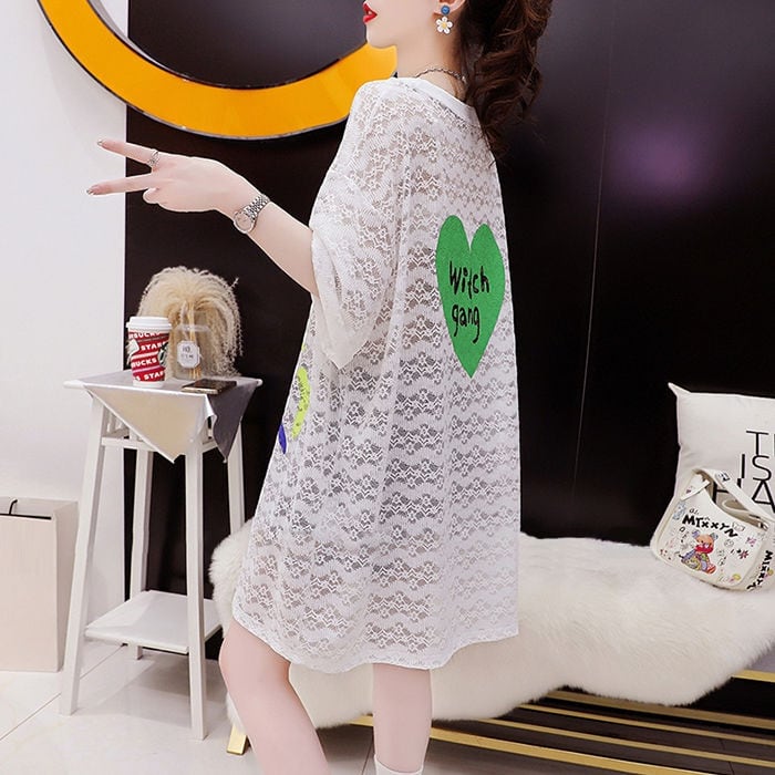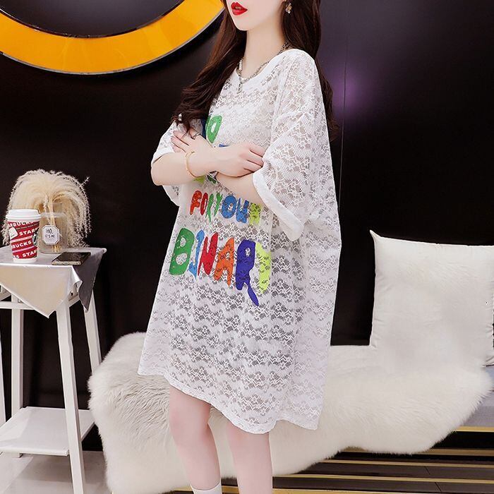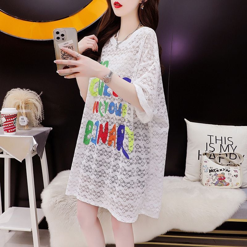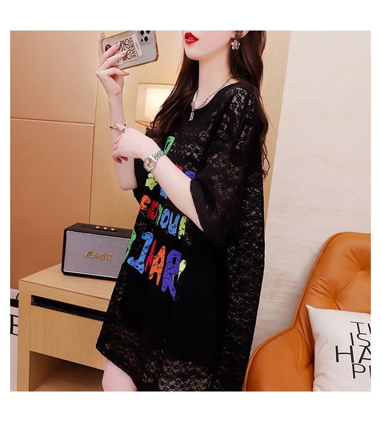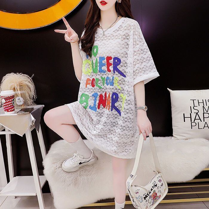話題沸騰中 レース 透かし彫り 2色選択 半袖Tシャツins-8525